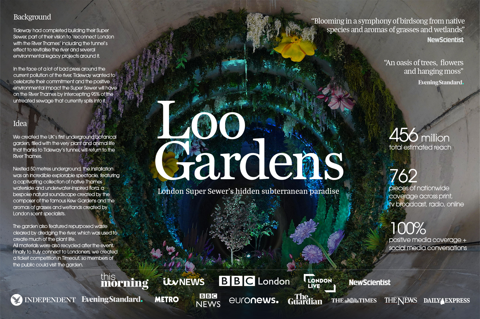 You build a botanical garden in it, using recycled rubbish from the Thames itself. Then you run a competition for the London public to win tickets to visit it, 50 metres below London.